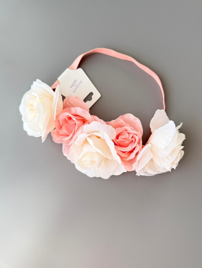 Galvas stīpa ar krēmīgi baltu un persiku rozēm