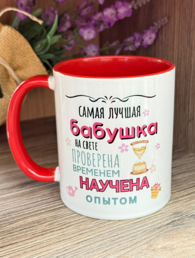 Liela LATTE krūze ar apdruku "Моей любимой мамочке! Ты самая лучшая на свете"
