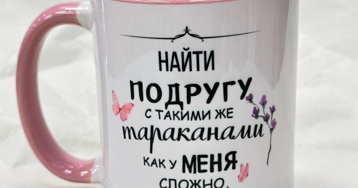 Krūze ar apdruku "Найти подругу с такими же тараканами как у меня сложно, но я тебя нашла!"