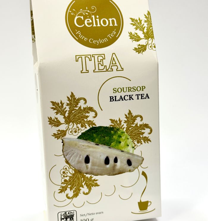 Augstākā labuma Ceilonas vidējo lapu melnā tēja “Soursops”, kas papildināta ar soursopa gabaliņiem un dabīgu soursopa biezinātu sulu. Soursops ir veselības auglis, tādēļ tēja satur daudz C vitamīna, šī tēja ir piemērota veselības uzlabošanai! Auglis soursops satur daudz C vitamīna un antioksidantu, nātrija, kālija, minerālvielu un ogļhidrātu. Soursopa garšu vislabāk var izskaidrot kā mango un ananāsa garšas savienojumu.