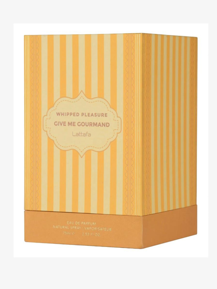 Iepakojums: unikāls un rotaļīgs flakons kā deserts – ar balta putukrējuma formu un karameļu “glazūru”; dizains simbolizē siltumu, sievišķību un saldumu. Ideāla dāvana sievietei, kura mīl maigumu un dzīves skaistumu