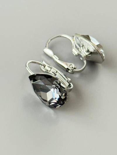 Antialerģiski auskari ar grafīta pelēku kristālu piliena formā