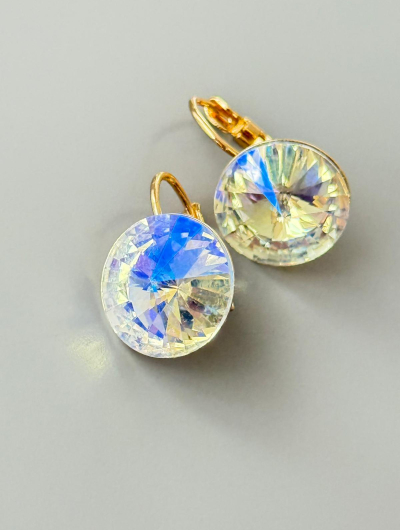 Antialerģiski auskari ar daudzkrāsainu apaļu kristālu