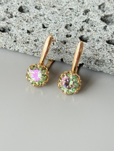 Apzeltīti auskari ar daudzkrāsainu kristālu