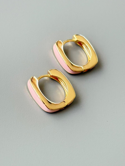 Apzeltīti auskari ar rozā emalju