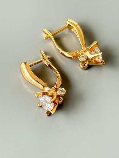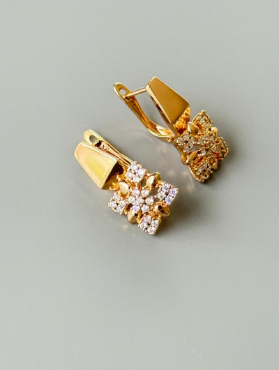 Apzeltīti auskari ar dzirkstošu kristālu