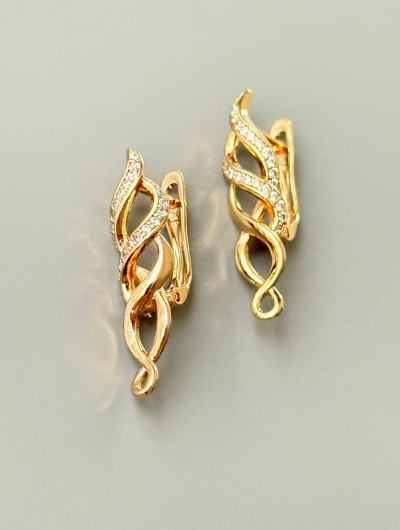 Apzeltīti auskari ar vijīgu dizainu un kristāliem