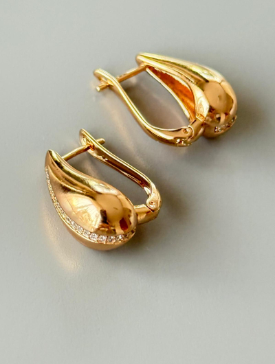 Apzeltītas piliena formas auskari ar kristāliņiem