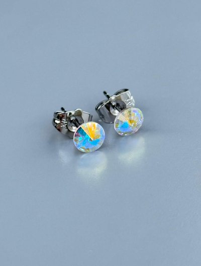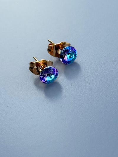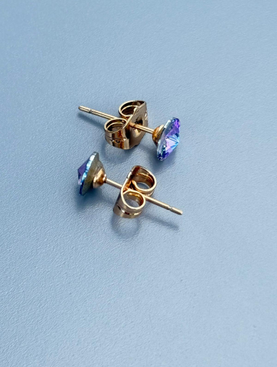Nagliņas auskari ar kristālu mainīgā zilgani-violetā tonī
