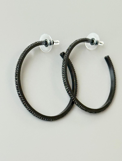Melni auskari riņķi ar spīdīgiem akmentiņiem