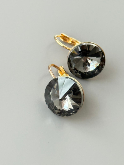Antialerģiski auskari ar grafīta pelēku apaļu kristālu