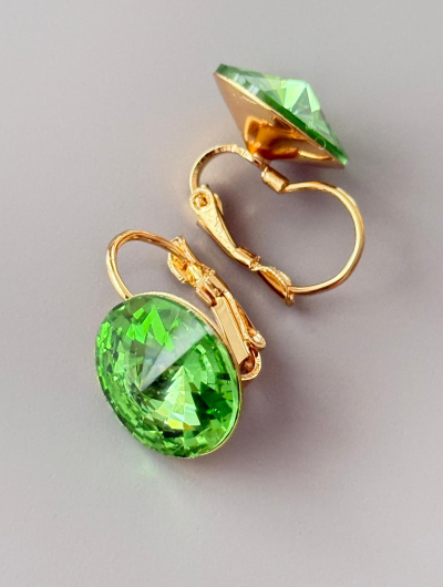 Antialerģiski auskari ar zaļu apaļas formas kristālu