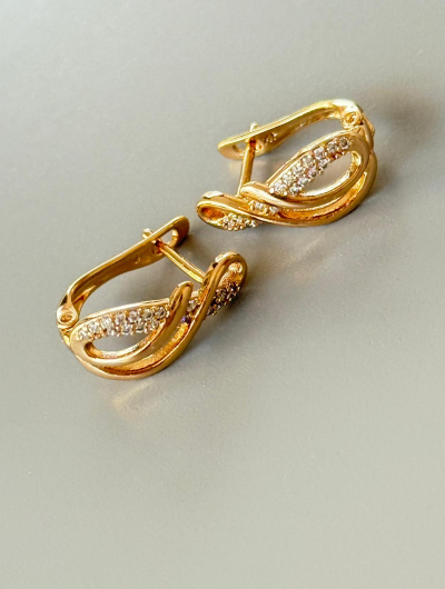 Apzeltītie elegantie auskari ar kristālu akcentiem