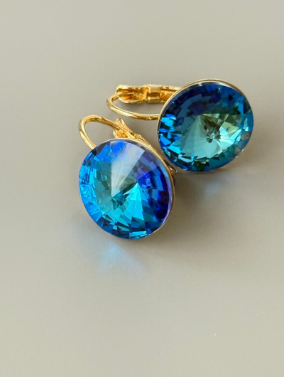 Antialerģiski auskari ar zilzaļu apaļas formas kristālu