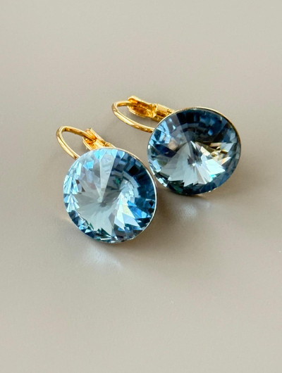 Antialerģiski auskari ar apaļu gaiši zilu kristālu