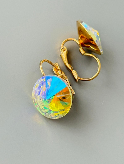 Antialerģiski auskari ar daudzkrāsainu apaļu kristālu