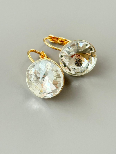 Antialerģiski auskari ar dzidru apaļas formas kristālu