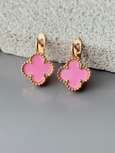 Modernie četrlapu āboliņa auskari "Clover Rose" ar angļu aizdari