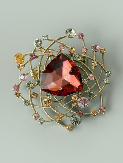 Spilgta roku darbs piespraude zieda formā ar fliteriem un pērlītēm