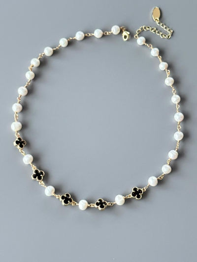 Kaklarota ar upes pērlēm un melnajiem āboliņiem