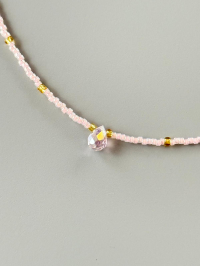 Gaiši rozā pērlīšu kaklarota ar apzeltītiem akcentiem un kristāla kulonu