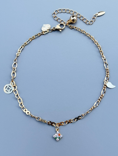 Apzeltīta potītes ķēdīte ar krāsainu rotājumu un piekariņiem