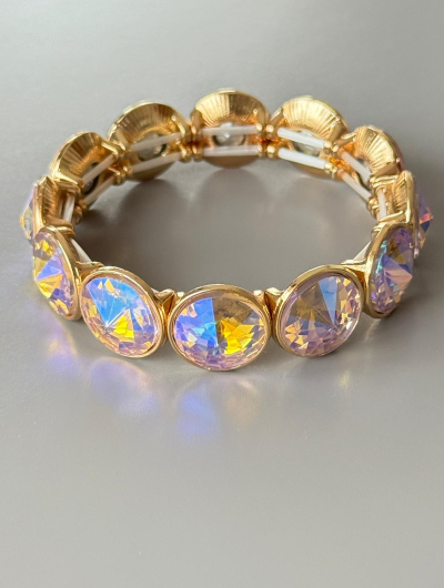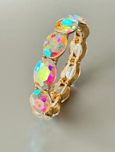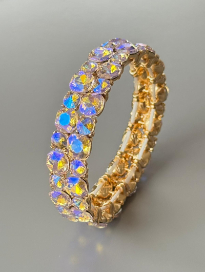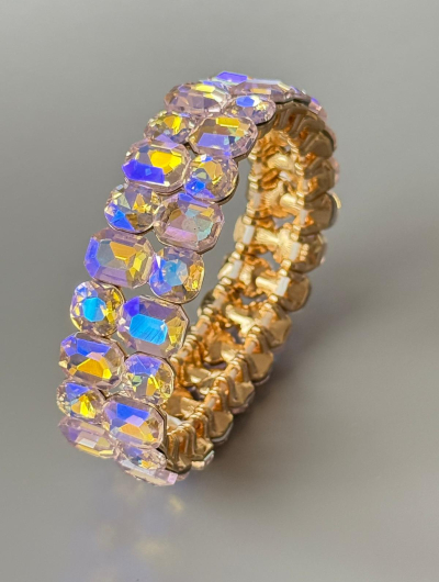Zelta krāsas rokassprādze ar lieliem varavīksnes fasetēta stikla akmeņiem