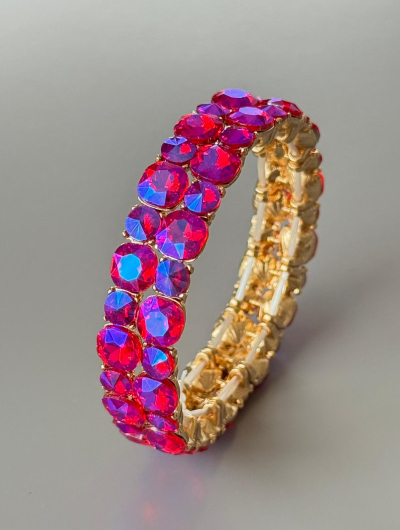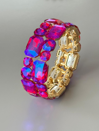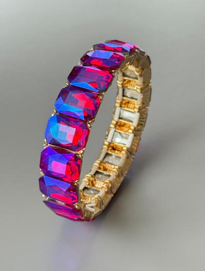 Rokassprādze ar lieliem fuksijas–violetiem fasetēta stikla akmeņiem