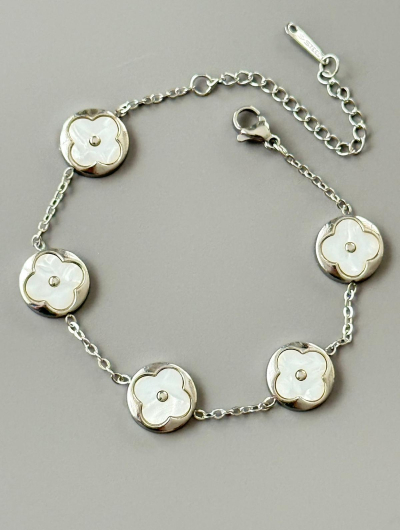Sudraba krāsas rokassprādze ar perlamutra āboliņiem