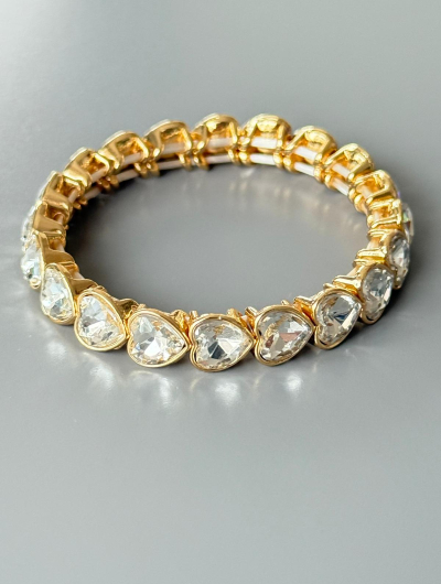 Rokassprādze ar caurspīdīgiem sirds formas fasetēta stikla akmeņiem