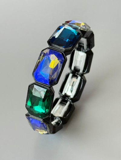Melni–daudzkrāsaina rokassprādze ar fasetēta stikla akmeņiem