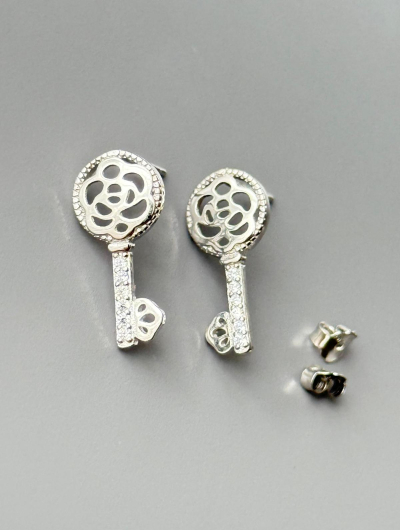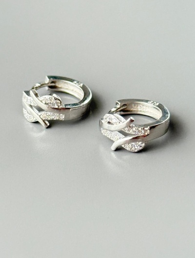 Sudraba auskari ar angļu aizdari ar cirkoniem