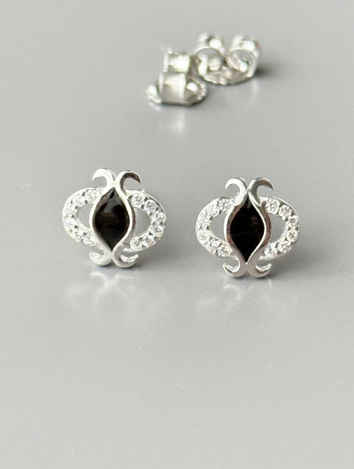 Sudraba auskari-nagliņas ar cirkoniem un emalju