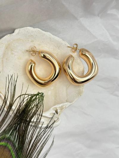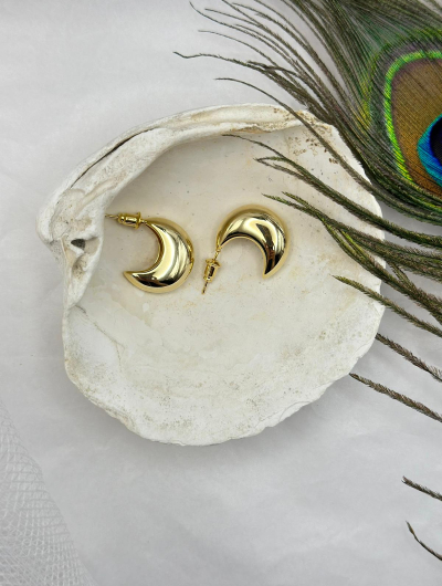 Apjomīgi apzeltīti riņķu auskari-puseti "MOON"
